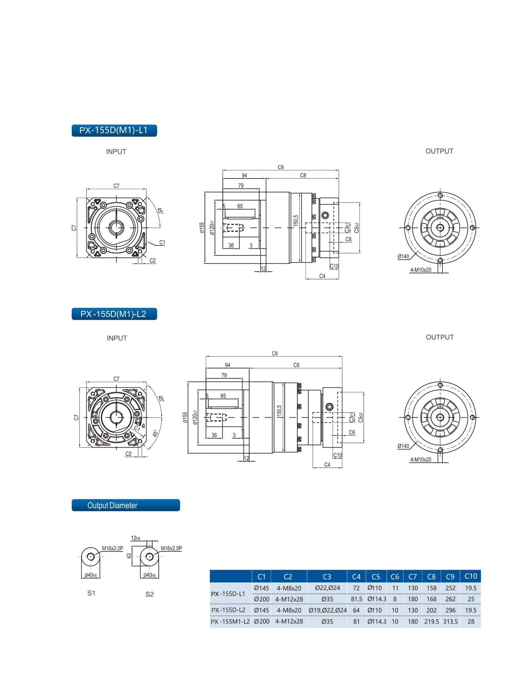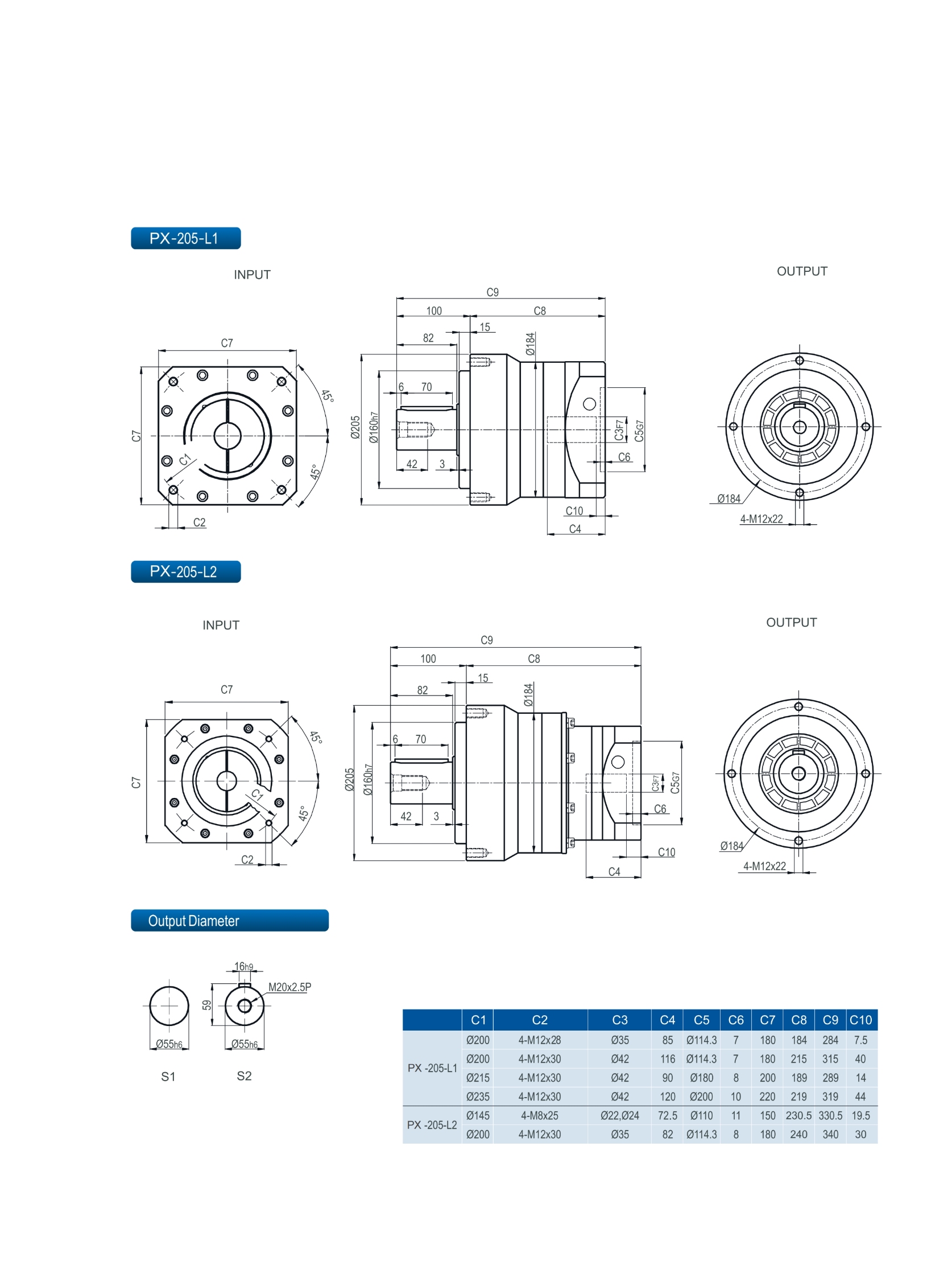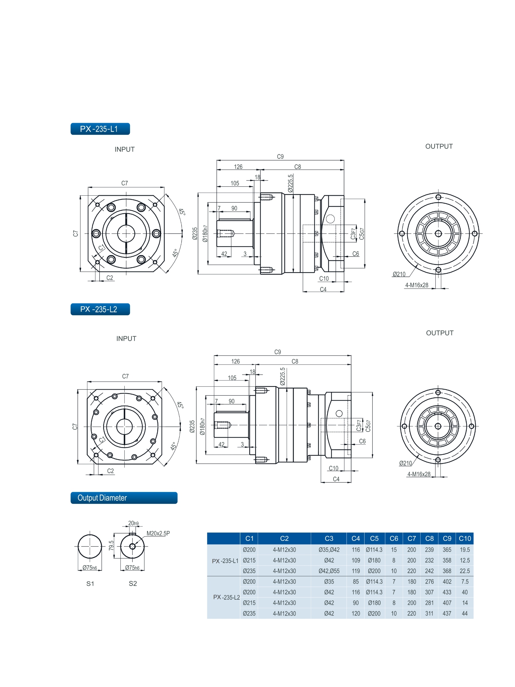| Stage | Ratio | PX042 | PX070 | PX090 | PX120 | PX155 | PX205 | PX235 | |