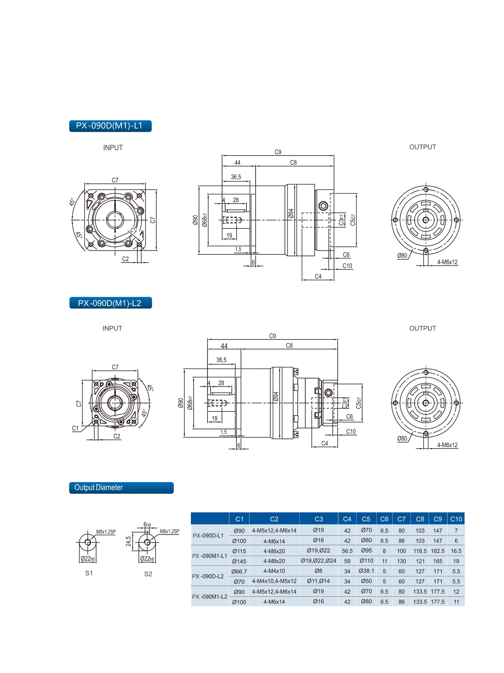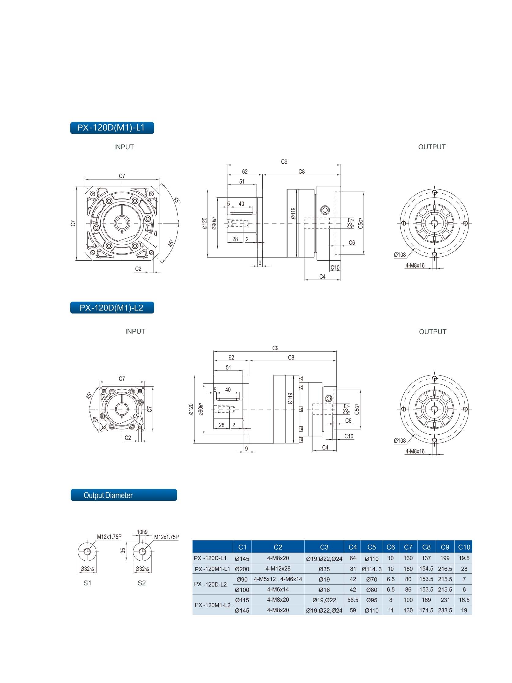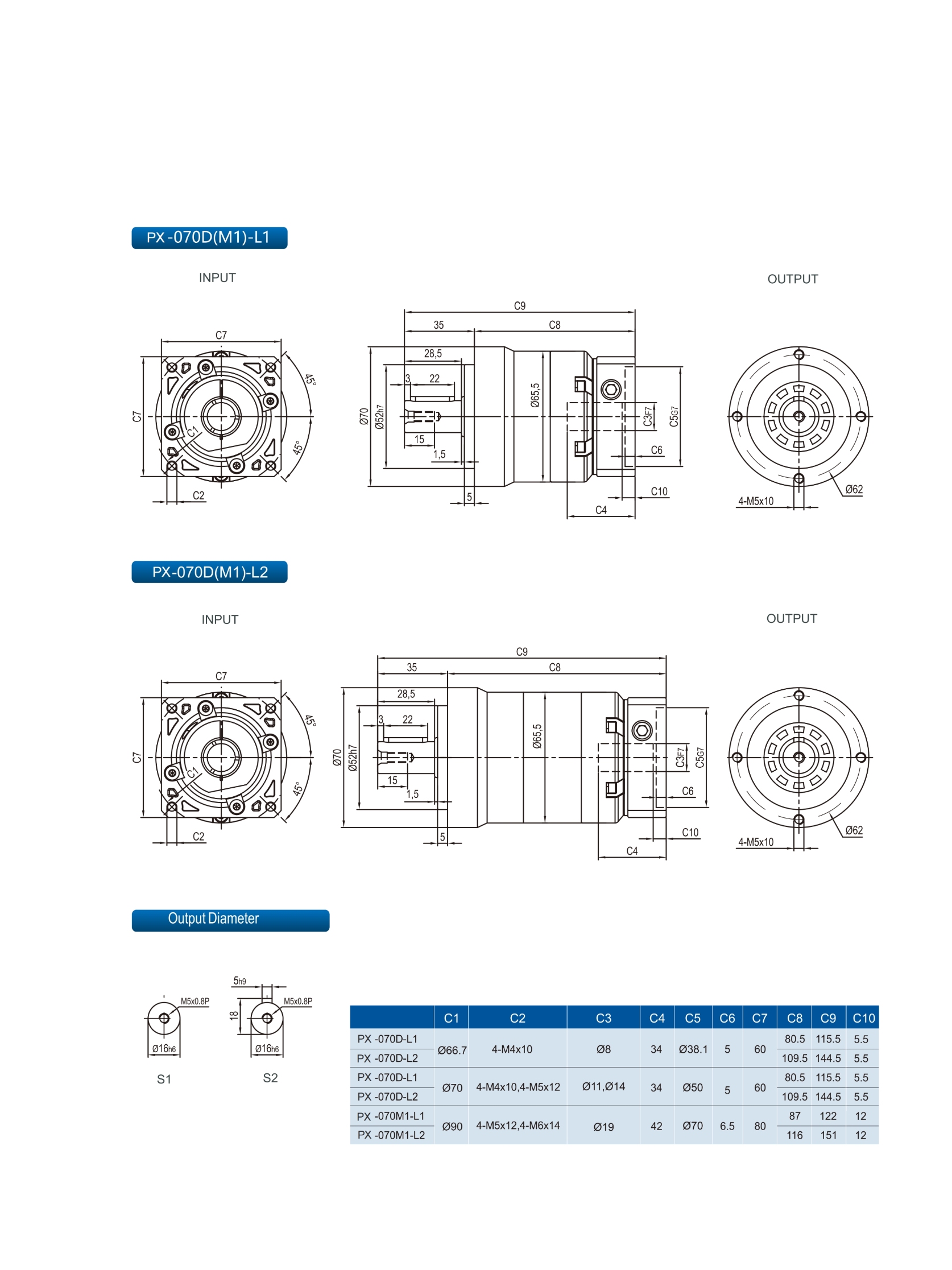 | Stage | Ratio | PX042 | PX070 | PX090 | PX120 | PX155 | PX205 | PX235 | |